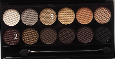 *In pliu am aplica maro sidefat(2) pe care l-am estompat ulterior,spre arcada cu fard bej(3).